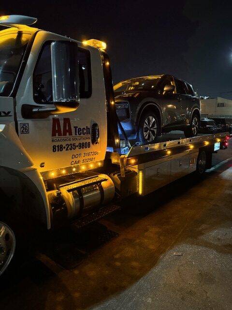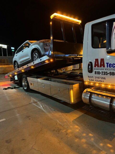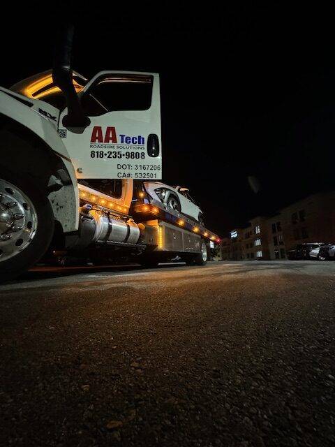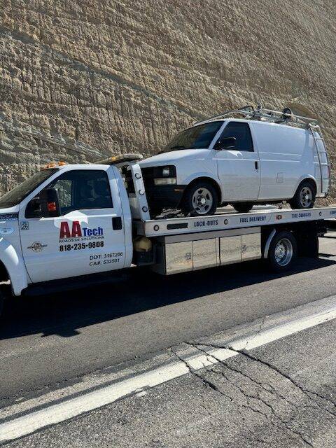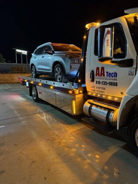 Tamara Khoury2025-01-26Trustindex verifies that the original source of the review is Google. My fiancé and I had rented a car for a quick road trip down the coast, and unfortunately ran into some difficulty on the grapevine. The check engine light turned on with some malfunction warnings, and we were forced to use the 24 hour emergency roadside assistance via the rental car company. Fortunately for us, they dispatched AA Tech to come tow us. Adam, the owner of the company, was so incredibly professional and kind to us during this whole ordeal. He kept us updated on his ETA while we waited, let us stop to get something to drink and use the restroom for the long haul back to LA. His truck was really clean and spacious. Honestly, Adam coming to help us really lightened the situation. Thanks so much again, Adam! Bayaraa Jadamba2025-01-25Trustindex verifies that the original source of the review is Google. Today I got stuck on the road with a flat tire, Adam came to helped me. He is really very quick and so professional. He fixed my flat tire very quickly. I'm so glad we didn't change the spare tire. Thank you so much. Adam is the best🩷🩷🩷🩷🙏🙏🙏🙏 Teresa Miller2025-01-24Trustindex verifies that the original source of the review is Google. Excellent service!! The owner of the company, Adam, personally towed our car. He was prompt, personable, communicated with us each step of the way, and went above and beyond to make sure we made it to our destination safely. I would highly recommend this family owned, and operated tow company! Simone Bailey2025-01-24Trustindex verifies that the original source of the review is Google. Best service So-Cal! Speedy and reliable service every single time. Thank you AA Tech!!!!! Sudhiranjan Mishra2025-01-24Trustindex verifies that the original source of the review is Google. Arturo was really helpful. Jesse C2025-01-24Trustindex verifies that the original source of the review is Google. Excellent service/very reliable Johanna Carballo2025-01-24Trustindex verifies that the original source of the review is Google. We received great service with Adam. He kept me in the loop when picking up my vehicle and dropping off my vehicle to the body shop and sent me pictures as well. He was super easy to communicate with and helpful! I highly recommend AA Tech. Thank you so much Adam for all your help! Rondal Rollin2025-01-22Trustindex verifies that the original source of the review is Google. Adam and AA Tech are a class act. From the time Adam phones to confirm your location to completion of service he provided first class service. Very accommodating, personable, knowledgeable and sincerely. Make Adam and AA Tech your first call if you’re have challenges on the road. Ben Wiles2025-01-22Trustindex verifies that the original source of the review is Google. Early, helpful and professional!! Cameron R2025-01-21Trustindex verifies that the original source of the review is Google. Adam was so helpful from the start. Was very prompt, knowledgeable, kind and empathetic of our situation. When no ubers were available to take us from where our car broke down, he went above and beyond to make sure we were picked up and dropped off at our destination safely. Can’t recommend his services enough! :)
